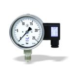 At any point where the process pressure has to be indicated locally, and, at the same time, a signal is wanted to be transmitted to a central controller or remote control room, The model PGT1 high-quality, stainless steel safety pressure gauge with a nominal size of 100 or 160. the electrical output signal proportional to the pressure, 4 … 20 mA, is produced. The measuring span (electrical output signal) is set automatically along with the mechanical display, i.e. the scale over the full display range corresponds to 4 … 20 mA. The electrical zero point can also be set manually